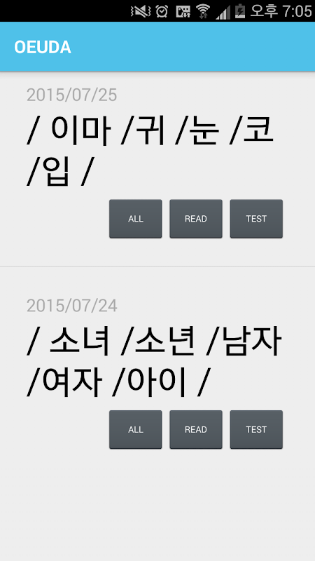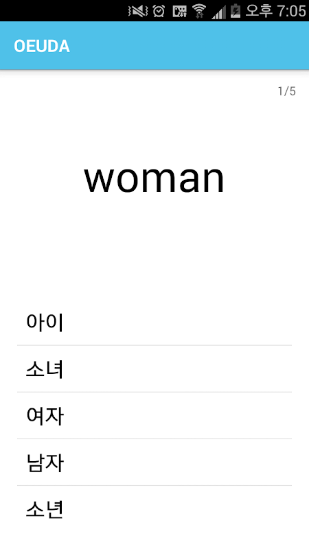 This app is the Korean word memorization application is to help the memorization of five words a day.