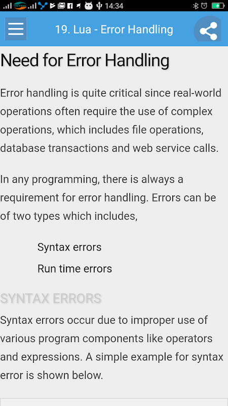 Lua is an open source language built on top of C programming language. Lua has its value across multiple platforms ranging from large server systems to small mobile applications. This Learn Lua Full covers various topics ranging from the basics of Lua to its scope in various applications.