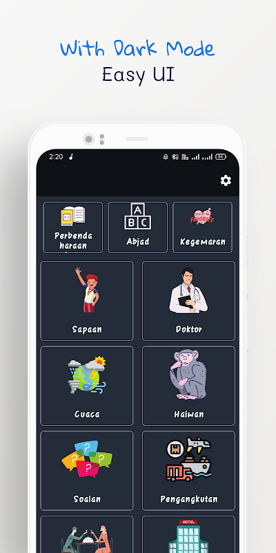 初心者向けのマレー語学習アプリケーションには、27の異なるセクションがあります。彼らは〜学校、仕事、動物、スポーツ、インタビュー、尋問、頻繁な文章、ホテル、日付、問題、レストラン、車、色、数字、医者、道順、交通機関、体、時間、感情、市場、旅行、自然、紹介、天気、占星術、挨拶、買い物。カテゴリは、これらの状況や場所で学習する必要のあるほとんどの文に十分です。