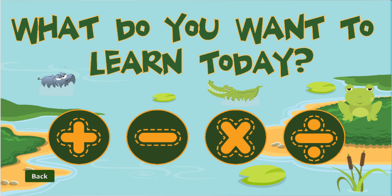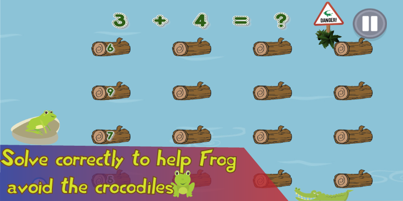 Add, subtract, multiply and divide. Follow the story of Frog, and watch your kid master addition, subtraction, multiplication and division. Learn math as Frog journeys through rivers and seas, and battles for survival through danger and life threatening challenges, escaping crocodiles, eating bees and fighting with fire. Solve the puzzle to jump, swim and battle the obstacles in your path.