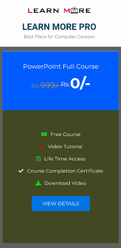 Also, We are Providing a free demo course of PowerPoint that you can enroll in free of charge to check our teaching quality, you will never get bored while learning our courses because learn more fun more this is main slogan of our app.