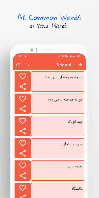 The Persian language learning application is divided into segments for the users, especially those who are beginners in studying the Persian language. The developer has added some simple and highly professional features for the precise information of languages. Especially in the vocabulary and the segments. In this description the features and the special functions of this application are the major discussions.