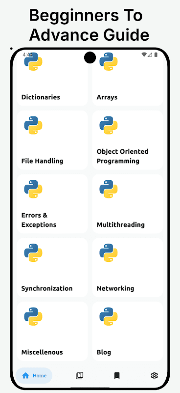 このアプリは、Pythonの初心者から専門家まで、簡単かつスマートにあなたを連れて行きます。混乱を招くことなく、すべてのコンテンツを簡潔かつわかりやすく作成しました。
