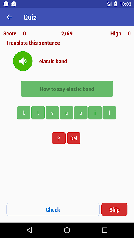 - クイズゲームは(正しい答えを選択して、意味のある文章を作るためにこれらの単語を並べ替える)単語やフレーズを改善します