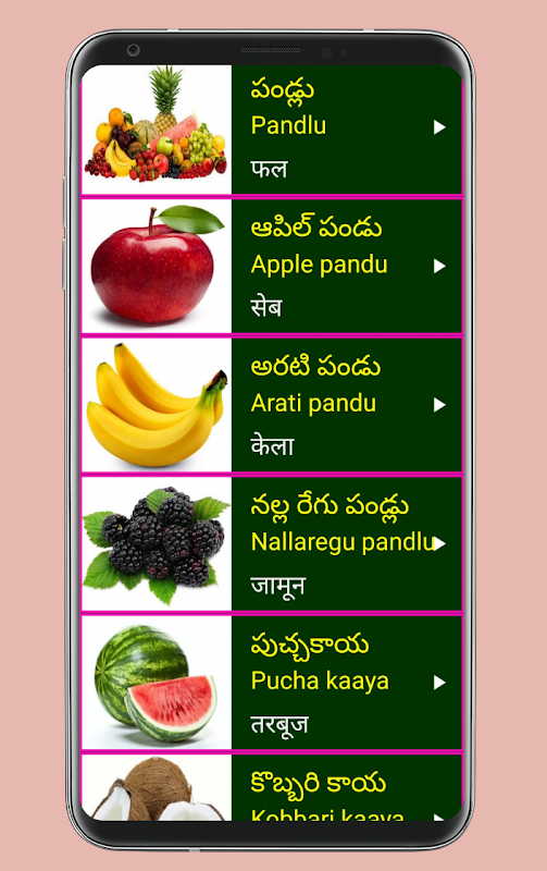 2.テルグ語の各単語には、ヒンディー語でテルグ語を簡単に学習できるように、明確な画像📸🖼️と音声発音🎵🔊があります。