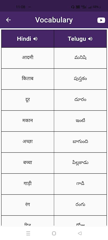 1. 豊富な語彙: ヒンディー語話者向けに特別に作られた 700 以上のテルグ語の膨大な選択肢を満喫してください。各単語にはヒンディー語の翻訳、発音、例文が付いています。これにより、さまざまな文脈での単語の使用法を理解できるようになります。