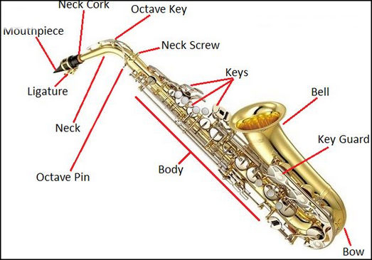 サックスは、ボディ、ネック、マウスピース、リードで構成されています。一部のサックスには追加のアクセサリが付属していますが、演奏する必要はありません。