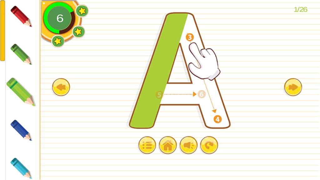 子供たちは、文字や数字の矢印に沿って動くアニメーションの手をたどるだけで、アルファベットと数字の書き方を学びます。