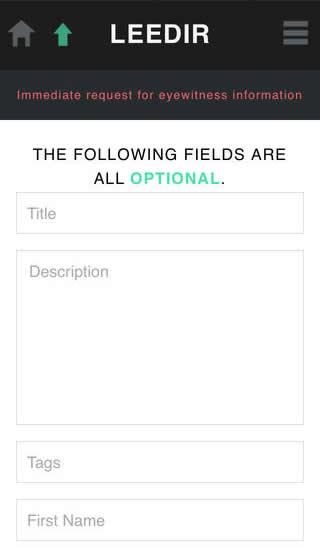 LEEDIR (Large Emergency Event Digital Information Repository) is a mobile and web application that enables citizen eyewitnesses to submit photos and videos to law enforcement and relief agencies during major terrorist/criminal events and natural disasters that occur in the United States.
