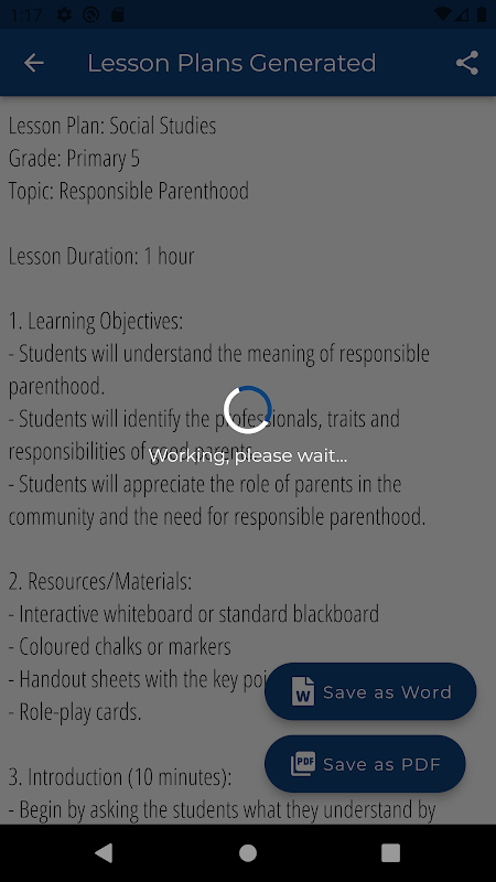 Lesson Plan Generator アプリを使用すると、主題分野、学年、クラスに応じたさまざまな言語での授業計画を作成できます。生成された計画を他のソーシャル ネットワークで共有したり、Word や PDF に保存したりできます。