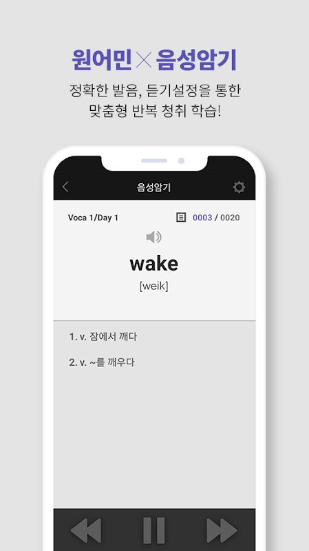 3.音声暗記:総3900の単語のネイティブスピーカーの音声を介して、正確な発音を聞くにはもちろん、繰り返し聞き、学習と記憶が可能です。また、リスニングの設定によってカスタマイズリスニング学習が可能です。