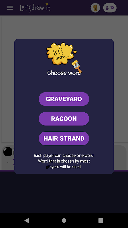 お絵かきコンテスト!マルチプレイヤーオンラインお絵かきゲーム。プレイヤーは単語を選び、絵を描き、他の人の絵を評価します。最高の絵を描いたプレイヤーが勝ちます!