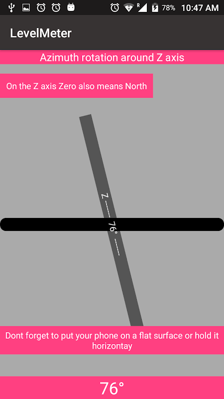 LevelMeterはあなたがあらゆる表面の角度を測定することを可能にするために電話センサーを使用します
