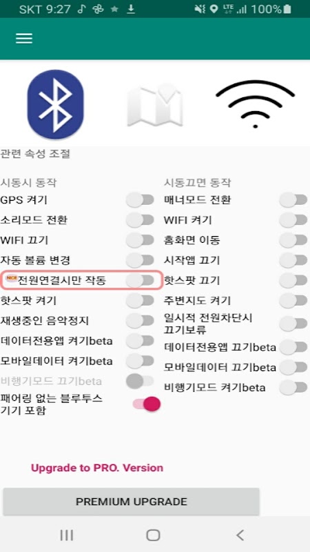 アプリを自動的に実行します。 Bluetooth接続なしでWIFIまたはGPSによってシャットダウンします