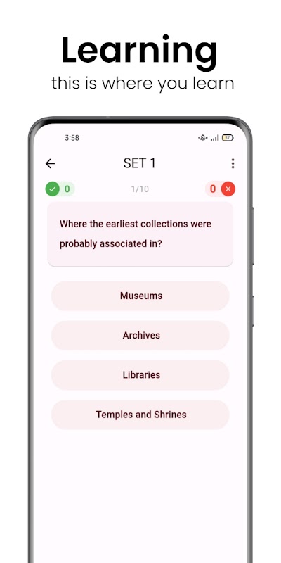 広範な質問バンク: このアプリは、図書館科学の幅広いトピックやサブトピックを含む包括的な質問バンクを提供します。ユーザーは特定のカテゴリを選択したり、ランダムなクイズを選択して知識をテストしたりできます。