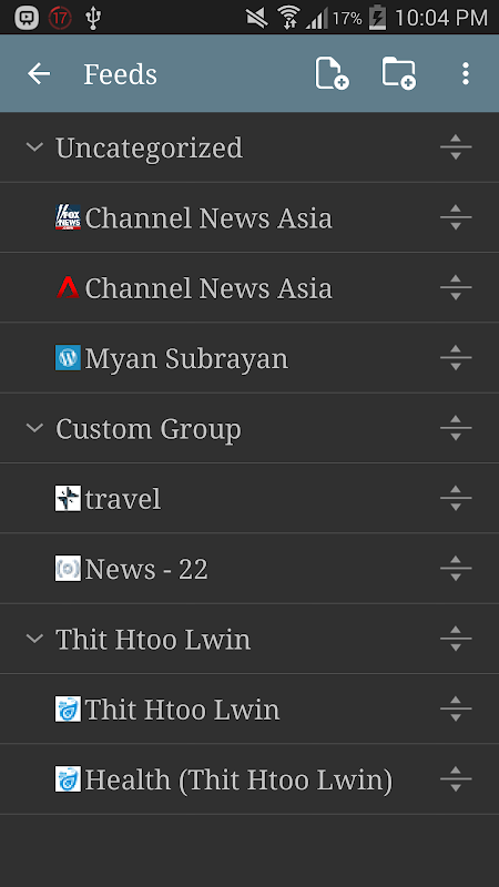 - And other options (Mark as read, unread, delete read entries)