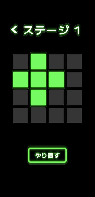 ルールは簡単、任意のマスをタップしてすべての明かりを消すだけ!