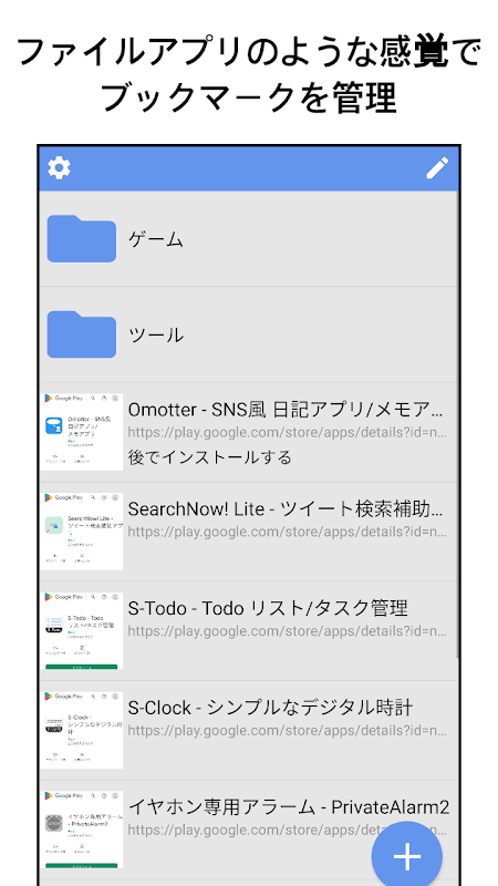 ファイルアプリのような感覚でブックマークを簡単に整理。