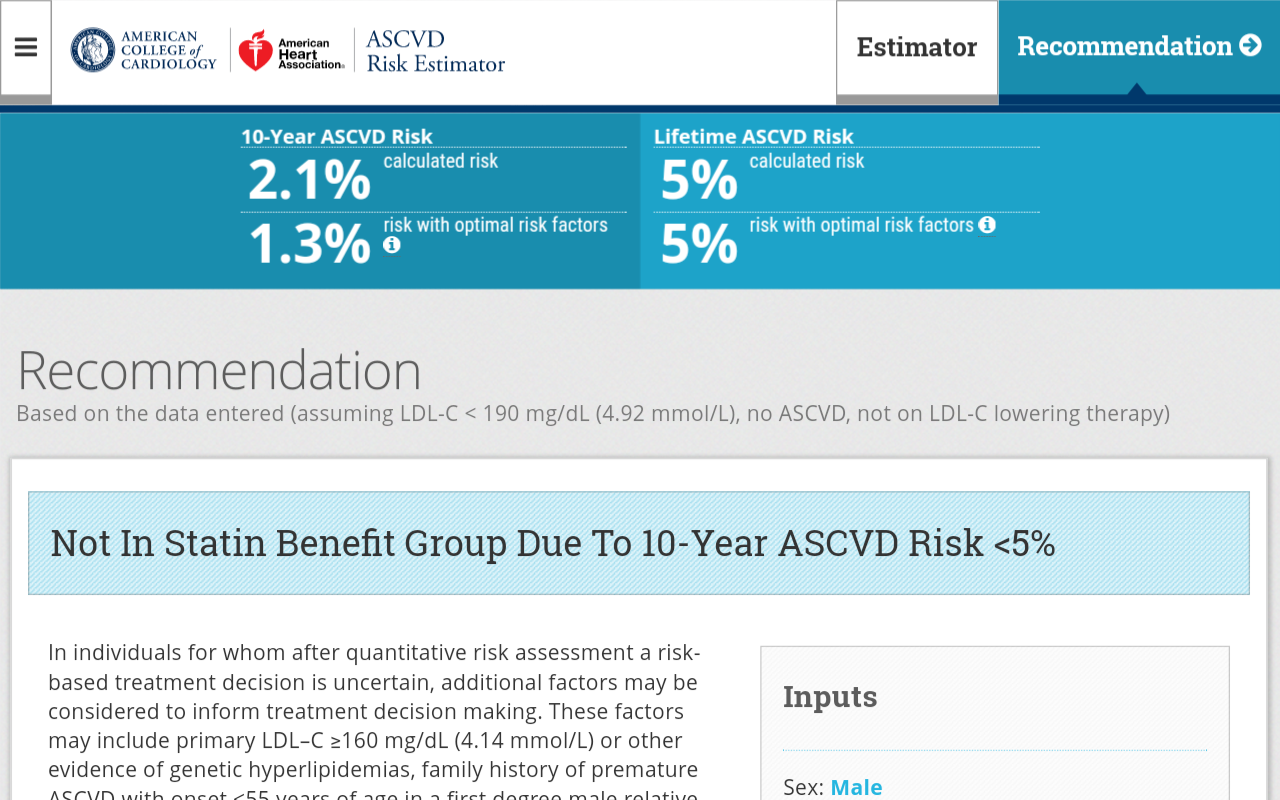- ASCVDリスク推定ツール:治療前のASCVDリスクを計算し、患者に対するスタチン療法の適切性を判断
