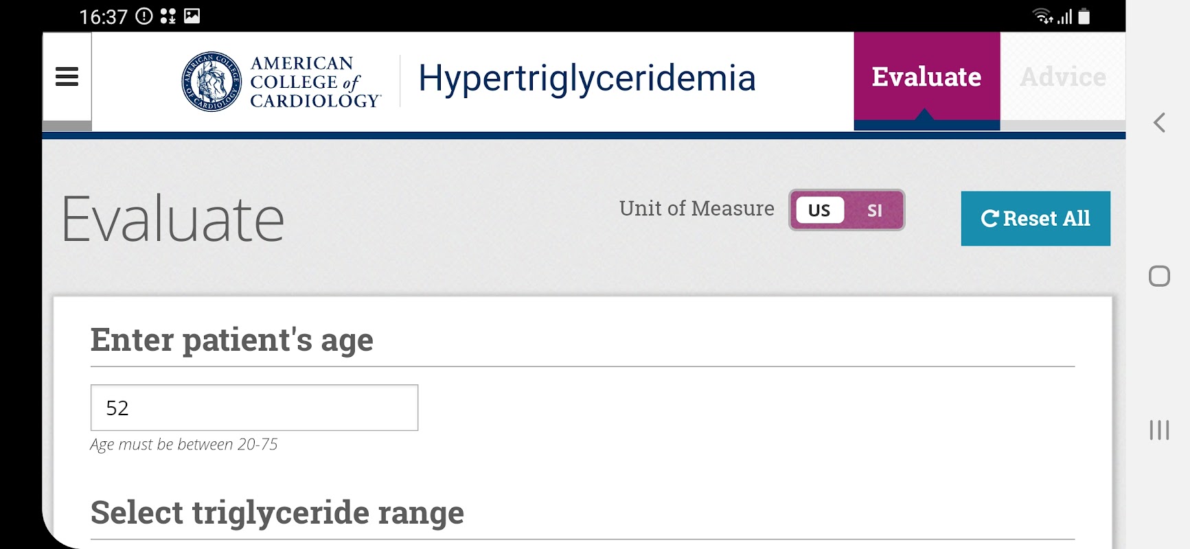 - 高トリグリセリド血症ツール:持続性高トリグリセリド血症を有する高リスク患者に対する生活習慣介入と薬理学的管理の両方について、患者に合わせたコンセンサスに基づく推奨事項をアプリで確認できます。