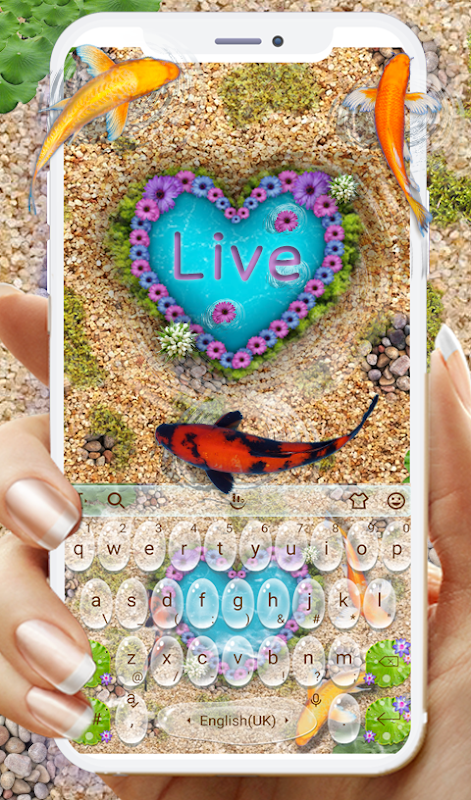 Live Koi fish Pondキーボードのテーマはあなたのキーボードのテキスト入力を本当の新しい外観にします。今すぐあなたのTouchPalキーボードのためのパーソナライズされたデザイン。