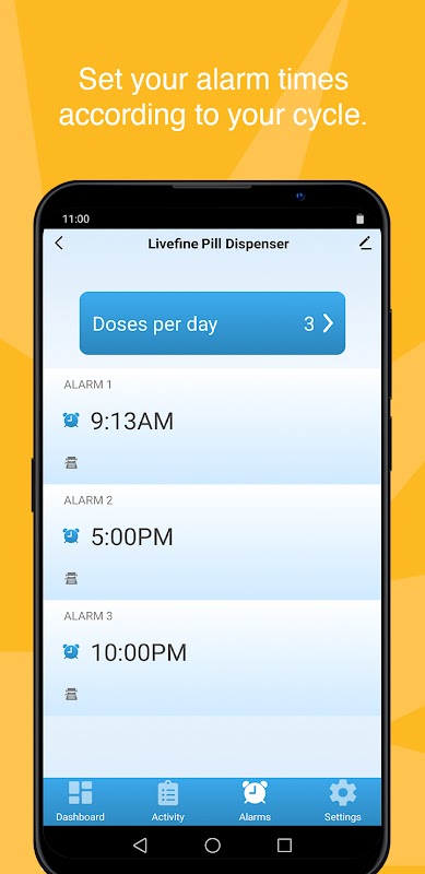 信頼できるLiveFineアプリで一歩を逃すことはありません。 LiveFineスマートデバイスをこのアプリに接続して、日常業務をできるだけ簡単にします。この操作が簡単なアプリを使用すると、信頼できるLiveFine自動ピルディスペンサーなどのwifi対応デバイスに接続できます。この信頼性の高いアプリを手に、薬をもう一度服用することを忘れないでください。ピルディスペンサーの近くにいないときでも、アラームを設定し、投与サイクルを選択し、投薬時間を選択します。スムーズでアクセスしやすいインターフェースにより、セットアップが迅速かつ簡単になります。私たちはあなたのライフスタイルを向上させたいので、使いやすくナビゲートしやすいアプリをお届けします。 LiveFineでデバイスを操作すると、次のことができるようになります。