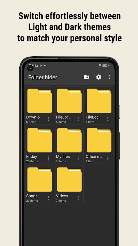 Folder Hider は、大切な写真、動画、ドキュメント、音楽、その他のファイルやフォルダを保管できる、あなた専用のロッカー、またはプライベートな金庫として機能します。あなたのスマートフォンを使用する友人が、ファイルマネージャーやその他のアプリケーションを使ってあなたの個人的な動画、秘密の写真、重要なファイルを閲覧できないようにします。