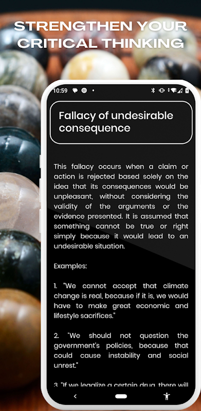 このアプリは、単に誤りや議論について教育するだけではありません。闇の心理学を利用する個人が使用する操作テクニックについての洞察が得られます。これらの戦術を見つけてそれから身を守る方法を学び、自分の決定や信念が外部からの影響ではなく健全な推論に基づいていることを確認してください。