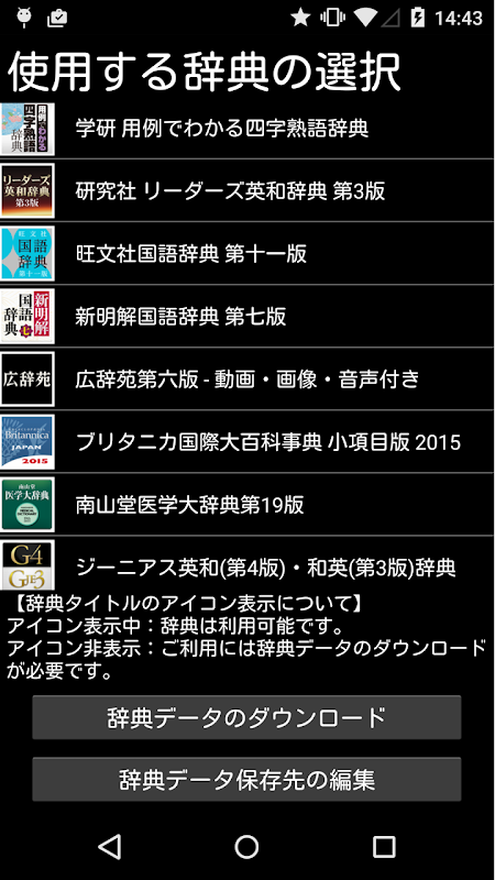・ SDカード(外部ストレージ)へ辞典データを保存することができます。