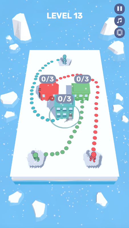 道を描くロジックゲーム。小さな人形たちをそれぞれの家に連れて行きましょう。