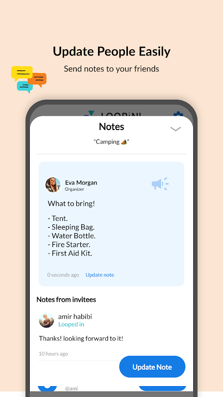 LOOPiN を使用すると、すぐに計画を立てることができます。ボタンを数回タップするだけでアクティビティを作成し、ループインして他の人を招待するための通知を友達に送信します。それはとても簡単です!