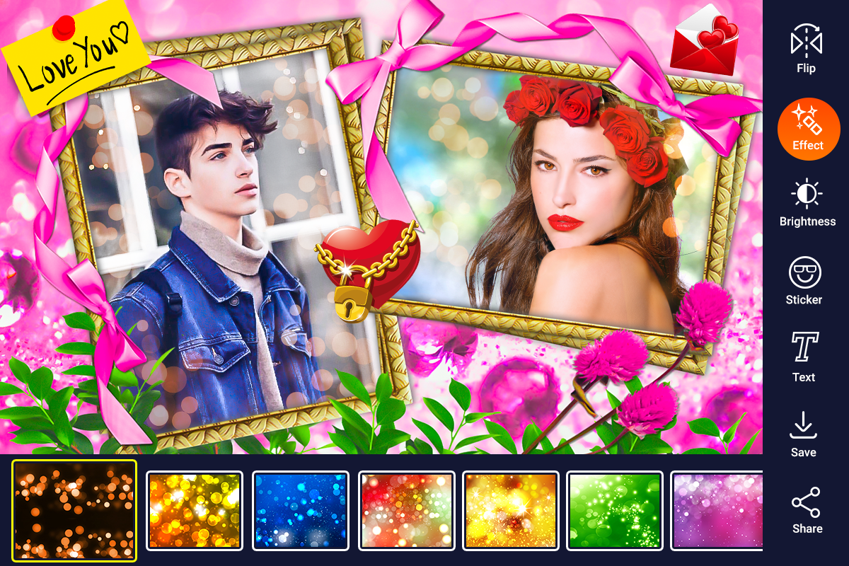 Love Dual Photo Frame has a beautiful collection of Love frames for couple, where you can set your photo in Love frames. No matter where you are, you can use this best Love photo editor to wrap your images.
