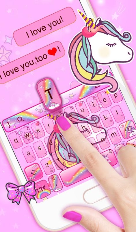 This stylish keyboard will also turn a plain keyboard into a pretty and unique one. Your keyboard looks totally different with this colorful keyboard. Download this keyboard theme and try it out! Pink unicorn keyboard theme only works with Touchpal keyboard installed on your phone.