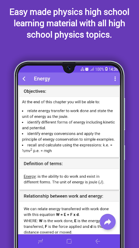 Physics tutorial app for high school level, get good summarised notes for your studies.