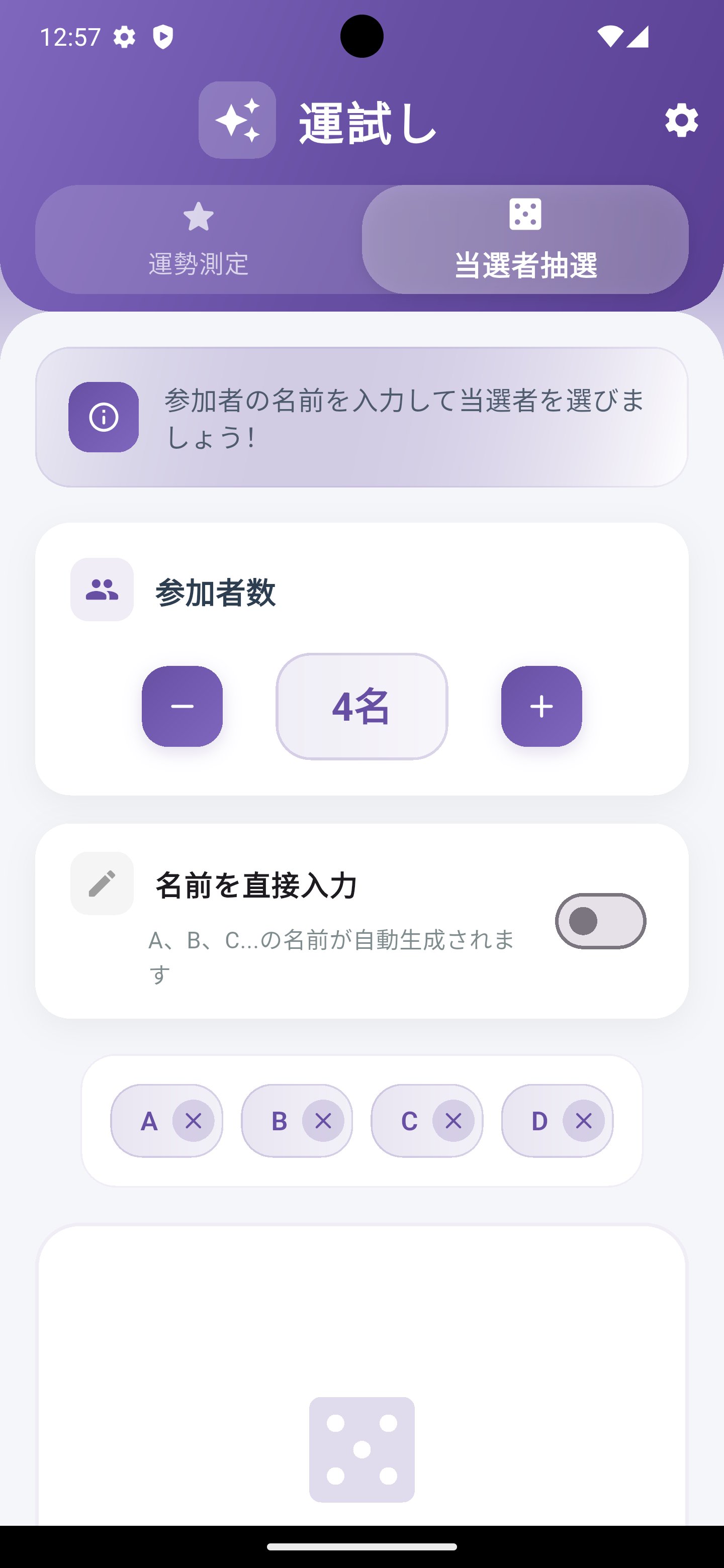 今日の運勢をテストしてランクを確認!友達と一緒に当選者抽選も楽しめます。