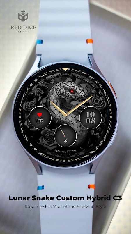 Lunar Snake Custom Hybrid C3で究極のカスタマイズを体験! 変容と力強さを象徴する魅惑的な蛇のデザインが特徴のこのウォッチフェイスは、新年を祝うのに最適です。