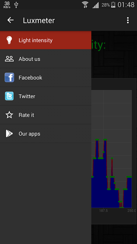 Luxmeterは、正確に光の強度を測定するAndroidアプリです。だけをダウンロードしてアプリを起動。お使いのデバイスは、光センサーを持っている場合、アプリケーションは自動的に光の強度を測定するために開始します。ユニットの測定は、ルクス(ルクス)です。