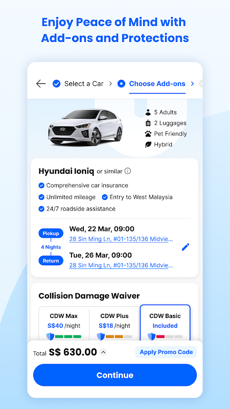 - 柔軟な受け取りと返却: 受け取りと返却の場所を選択してさらに便利になります。