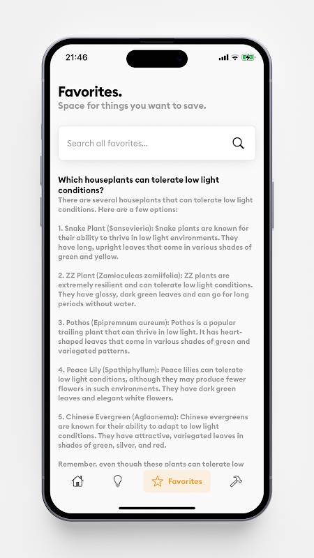いつでも質問してください:ミニマリスティック AIでは、好奇心に限界はありません。古代文明についてもっと学びたい、最新の技術トレンドについて知りたい場合でも、質問をして正確な回答を得ましょう。これらの回答は直接コピーして他の場所で使用したり、簡単に再度見つけるためにお気に入りとしてマークしたりすることができます。特別に設計されたお気に入りエリアは、貴重な情報をすぐに手に入れられるだけでなく、最も重要な洞察を素早く見つけるための検索機能も備えています。アプリ内で探索を発見、保存し、再度アクセスすることができます。