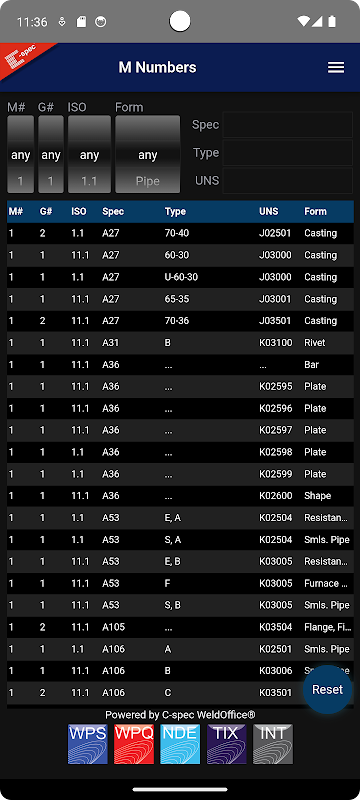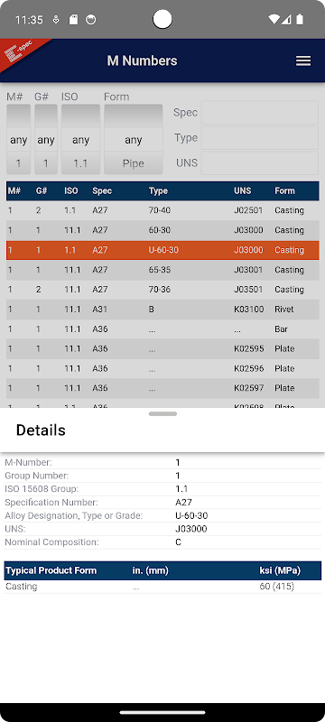 母材の溶接性グループ番号のクイック検索