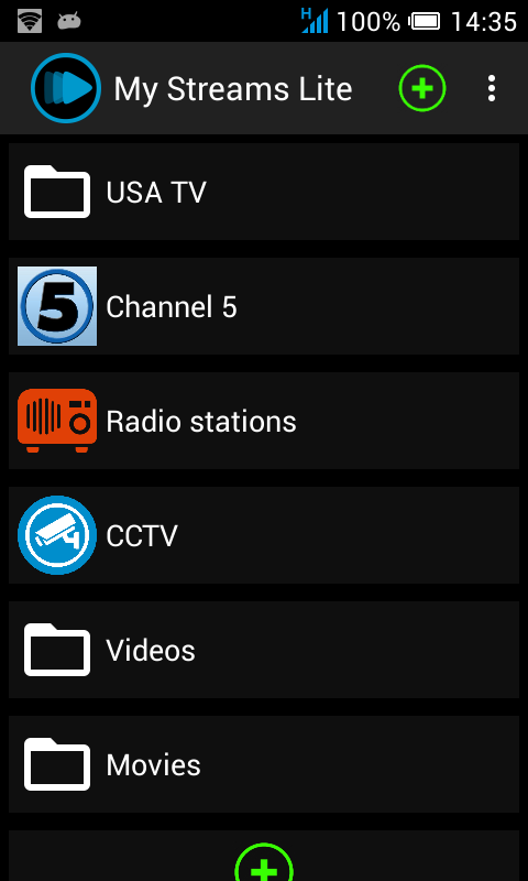 For example you can create one folder for Live TV, one for Live Radio Stations, another for your own CCTV cameras and another for Video on Demand.