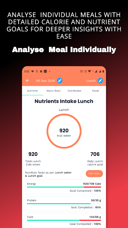 🎯カスタマイズされた目標: 食事のカロリーと栄養素の目標を個別に設定します。