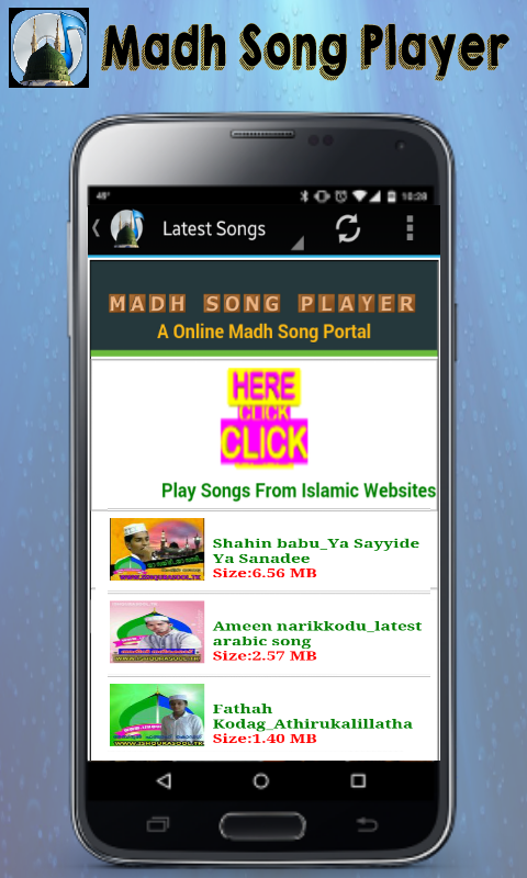 Using Madh Song Player you can play any Islamic songs uploaded in famous Islamic websites like IshquRasool, HubbuRasool, Muthnabi and other websites without downloading any songs. Click on the song and wait to load for 10-15 seconds. You can run this application in any network without buffering.
