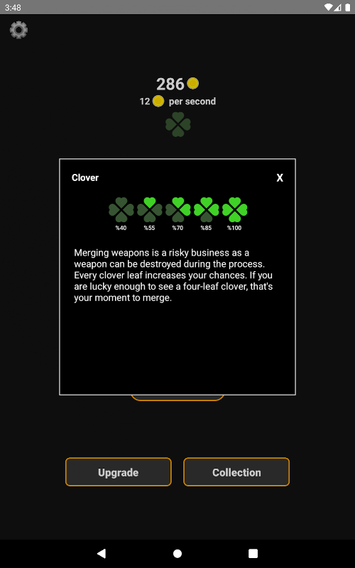 武器のマージは、プロセス中に武器が破壊される可能性があるため、危険なビジネスですが、金床は公平です。武器を失うと、次のマージが成功する可能性が高くなります。すべてのクローバーの葉はあなたのチャンスを増やします。幸運にも四つ葉のクローバーを見ることができたら、それがマージの瞬間です。
