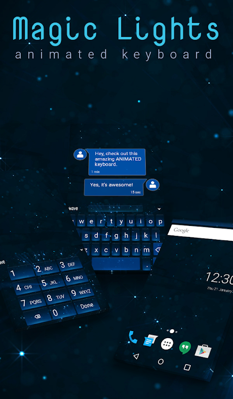 アニメーショングラフィックを備えたカスタムキーボードデザインは、クールなライブ壁紙によく合います。充実したコミュニケーション機能で書くのが楽しくなるキーボードです。まず、視覚的に楽しい素晴らしいデザインを選択します。フォント、鮮やかな色、面白いサウンドなどを好みに合わせてカスタマイズします。 800 を超える絵文字を使用して、カラフルなキーボードの背景を使用して感情を簡単に表現できます。 GIF ファンなら、Wave Animated Keyboard にリンクされたコレクションを気に入るはずです。さらに、インスタント GIF を作成して自分の考えを明らかにすることもできます。 Wave Animated Keyboard は、見栄えの良さと楽しいコミュニケーション方法に加えて、いくつかのスマートな書き込みツールを提供します。自動修正機能は 20 以上の言語をサポートします。音声入力オプションを使用すると、両手が自由になり、書く以外にも楽しいことができます。