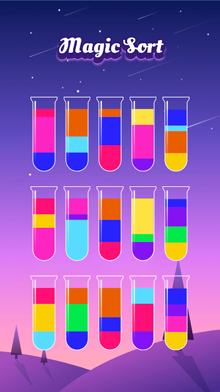 新しいプレーヤーの場合、必要なのは、すべての水が同じチューブに満たされるまで、同じ色の水を 1 つのチューブに並べ替えることです。