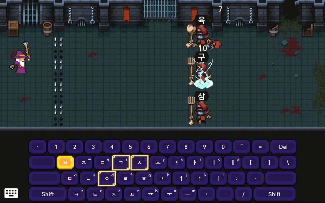 エキサイティングなゲームプレイ:韓国語の単語やフレーズを入力して呪文を唱え、敵を倒します。
