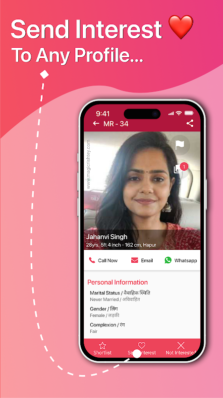 私たちのアプリを使用すると、数回クリックするだけで、あなたのジーヴァンサティに出会い、愛、信頼、幸福に満ちた人生を築くことができます。今すぐ Magic Rishtey をダウンロードして、結婚の旅への第一歩を踏み出しましょう。何百万人もの人々が私たちを信頼しています。なぜあなたも信頼しないのでしょうか?