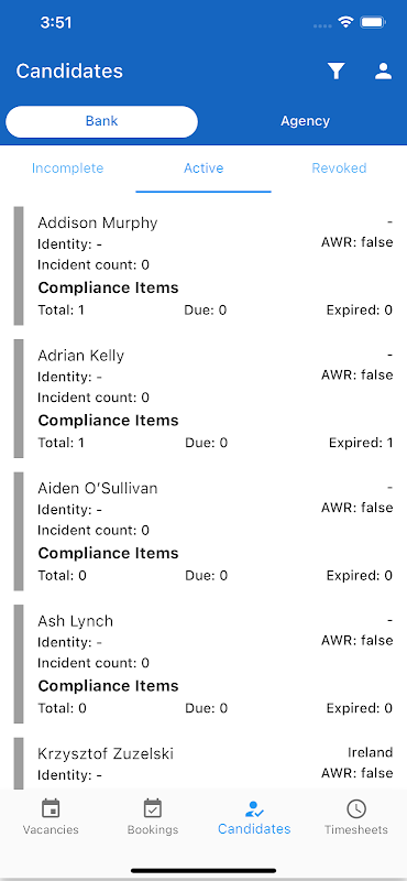 候補者が予約とタイムシートを閲覧するための Magnit Shift