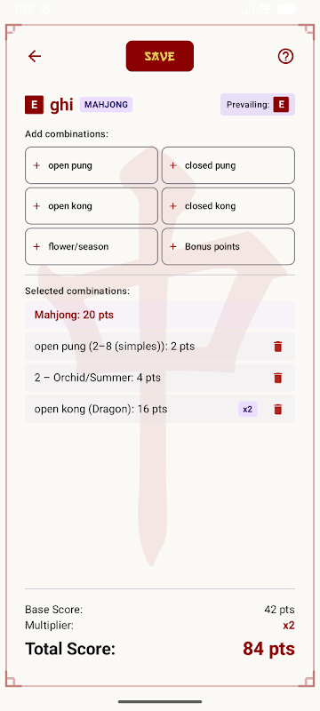 ヨーロッパ式/古典的な麻雀の得点ルールを採用しています。